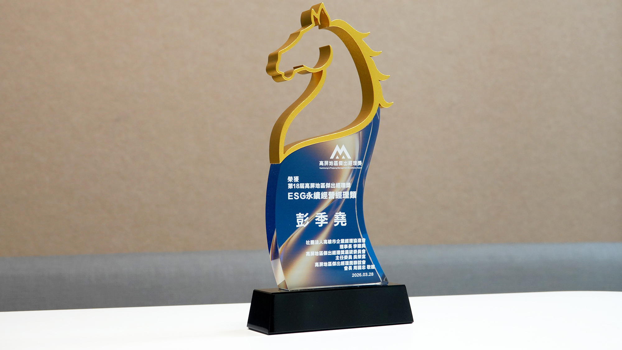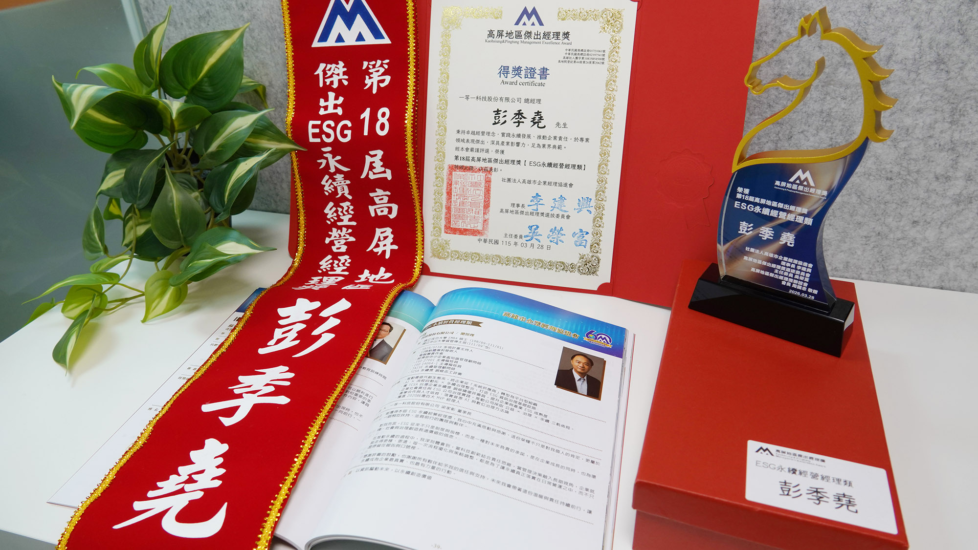 賀!一等一科技彭總經理 獲頒高屏地區傑出經理獎 賀!一等一科技彭總經理 獲頒高屏地區傑出經理獎2026.04.08 / 活動花絮 由高雄市企業經理協進會主辦「第18屆高屏地區傑出經理獎」暨「第十六屆高屏地區特殊貢獻獎」選拔,3月4日於高雄市議會舉行記者會揭曉,從企劃、生產、研發、人資、AI與ESG等12大類別中,評選出18位企業菁英榮獲傑出經理獎。並訂於3月28日假高雄林皇宮飯店盛大舉行頒獎典禮。 在眾多優秀菁英中,一等一科技 彭季堯總經理 脫穎而出,榮獲首度新增的指標性獎項「ESG永續經營經理獎」。 ▲ 高雄市企業經理協進會 李建興理事長與一等一科技 彭季堯總經理合影。 新聞報導FB活動照片 一等一科技2026-04-08T15:44:43+08:00